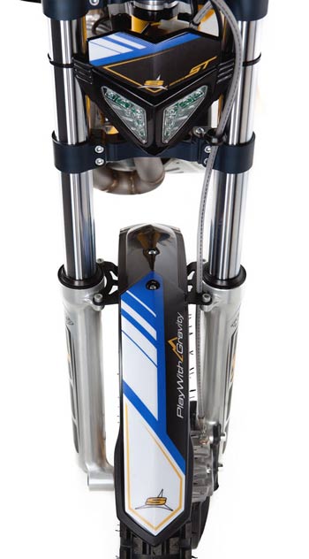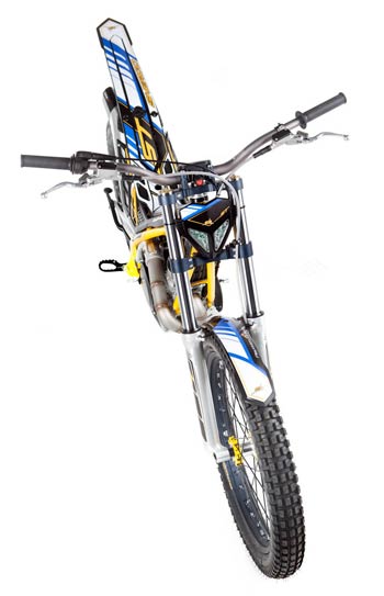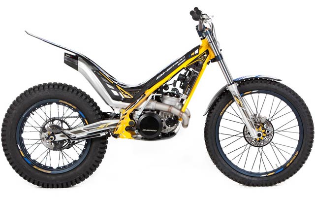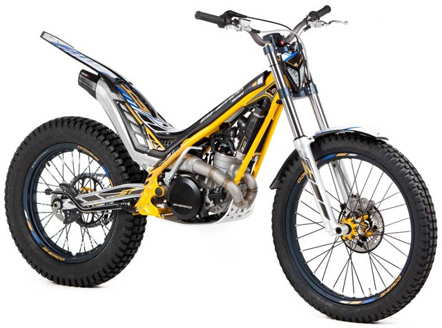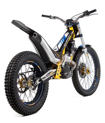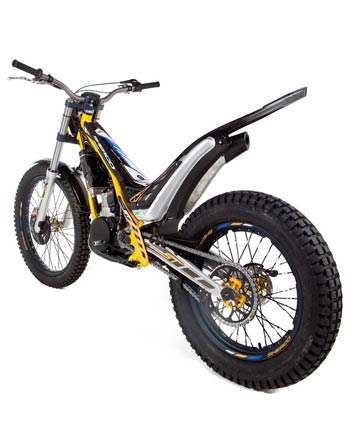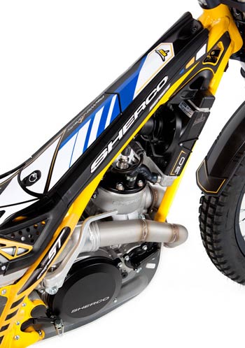 2 strokes Sherco proprietary design 294 cc 79 x 60 mm Nikasil coated cylinder 2% oil pre-mix Unleaded gasoline 98 Octane Keihin Γ28 mm Liquid system Geared system with folding lever Steel header pipe with an integrated aluminum muffler 5 speed sequential gearbox with security selector system to prevent false shifts. Primary gear drive chain secondary drive Hydraulic, multidisc in oil bath Hidria digital Tubular section frame Chrome-Molybdenum Ergal aluminium with integrated fuel pump Hydraulically activated, floating 185 mm front and 145 mm rear Tech Γ39 mm hydraulic telescopic fork, 165 mm travel Progressive link system with single adjustable shock absorber, 175 mm travel R16V Morad 21β€ graphite anodized aluminum rim and aluminum hub, steel spokes with Michelin tube-type tire Morad 18β€ graphite anodized aluminum rim and aluminum hub, steel spokes with Michelin tubeless tire 68 kg 1,322 mm 310 mm 645 mm