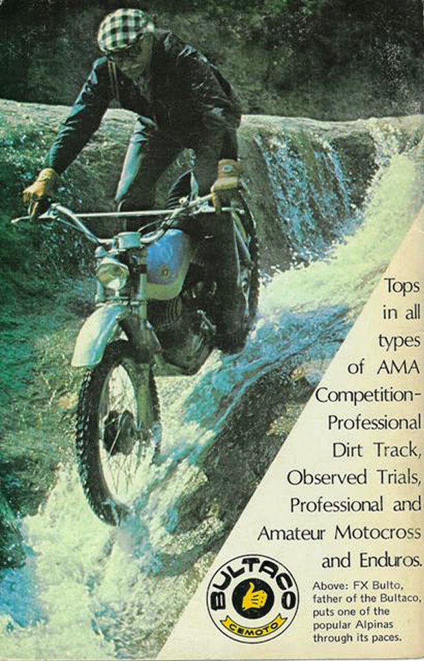 Ανοίξτε ένα περιοδικό και δείτε τις σημερινές διαφημίσεις μοτοσυκλετών (κάπου ανάμεσα στα σκούτερ είναι). Και μετά ξαναδείτε μια το χαμόγελο του Paco πάνω στην Αλπίνα έχοντας διαλύσει στην κυριολεξία τον ανταγωνισμό στο trial championship.